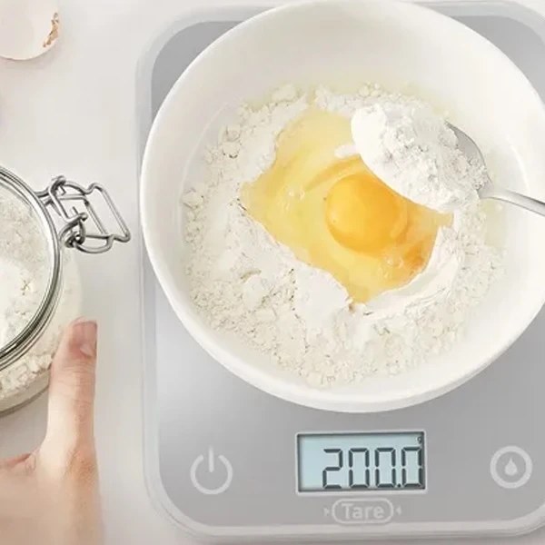ترازو آشپزخانه تفال، قابلیت وزن کشی تا ۵ کیلوگرم، منبع تغذیع دو عدد باتری نیم قلم، صفحه نمایشگر دیجیتال، دارای دکمه Tare که میتوانید در هر زمان حجم مواد را صفر کنید و مواد دیگر را اضافه کنید، دارای حالت آویز کردن، قابلیت اندازه گیری در حالت های:پوند، انس، گرم، میلی لیتر، اونس مایع (شیر، روغن)، میزان دقت اندازه گیری(خطا) ۰.۵ گرم، طراحی و مهندسی محصول در کشور فرانسه مونتاژ نهایی در کشور چین